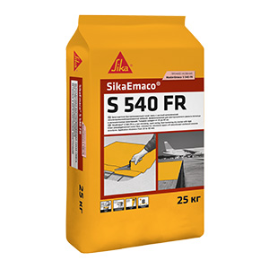 SikaEmaco® S 540 FR — готовый к применению материал в виде сухой растворной смеси. Максимальная крупность заполнителя составляет 3 мм. При смешивании с водой образуется реопластичный, литой, не расслаивающийся раствор с хорошей адгезией к стали и бетону.